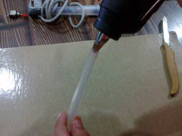llenar el tubo con pegamento caliente desde el extremo abierto del tubo (nota que tienen a prensa el caliente pegamento pistola continua para que el pegamento alcanza el otros final donde su es allí y cerca el TOP con el otros LED.) Y asegúrese de que el led es paralelo.