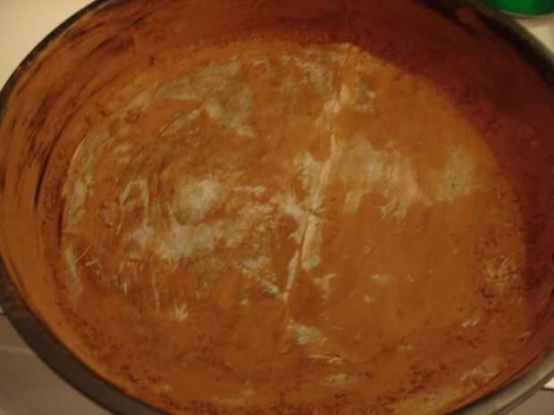 Ahora, tus otros pasteles deben hacerse, así que con cuidado uno de ellos retire su pan. Lave la bandeja real rápido con agua y jabón y seca. Si tienes un pastel 3er pan separado de los otros dos, ignorar esa última parte. Engrasa y Enharina tu pastel de pan y verter en la masa.