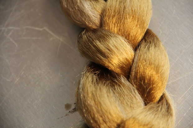Destrenzar los colores de pelo. Cuelgue una coincidencia de color en su mano.