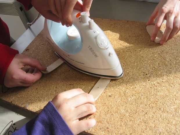Para preparar la forma, usted tiene que mantener un extremo de la placa pegada en la plancha de 20 segundos (tal vez este podría ser el momento para algunos consejos de seguridad). El calor se vuelva a ablandar el pegamento por un tiempo muy corto. ¡ Apresúrese para arriba y continúe inmediatamente con el paso 6.