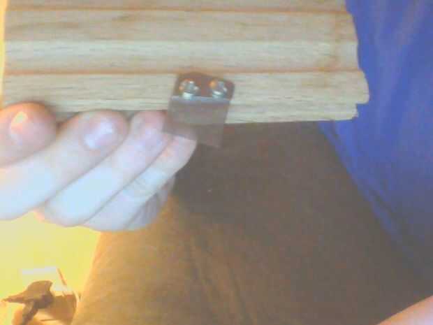 Tomar los dientes de metal y sus tornillos originales y tomar su pedazo de caja de madera y lápiz. Ahora toma el lápiz y marque donde su poner los tornillos (Asegúrese que los dientes metálicos en la parte derecha para que pueda jugar (hay una foto más abajo). Ahora toma los tornillos y utilizar para perforar un agujero en la madera, si tienes un taladro sólo tiene que utilizar un poco para este trabajo pero no tienen uno, así que estoy usando los tornillos, tomar los dientes de metal y tornillos y atornillarlo.