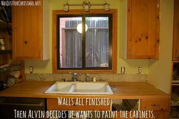 Incluso mi esposo está de acuerdo ve bastante bien, y generalmente lo primero que hace tras inspeccionar uno de mis proyectos es lo que está mal con él. Posteriormente agregó un nuevo grifo, fregadero y encimeras y lijar y pintar los gabinetes - dicho todo esto pasamos unos $3.000 para una actualización que sin duda nos a través de los próximos cinco años, más o menos - hasta que podemos permitirnos el derecho a derribar esa pared grande.