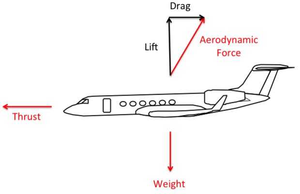 Ya sabemos que tres fuerzas que actúan sobre un avión - arrastre, empuje y Levante. Arrastre es opuesta al empuje. ¿Qué es opuesto a levantar? Ascensor hace que un avión vuele y gravedad lo hace caer. Ahora conocemos cuatro fuerzas que actúan sobre un avión.