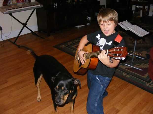 Fue un poco más tarde, RavingChild estaba haciendo su práctica de guitarra, y me impresionó Cómo cojo la correa de nylon naranja que vino con su guitarra. Lástima no pudimos encontrar algo mejores...