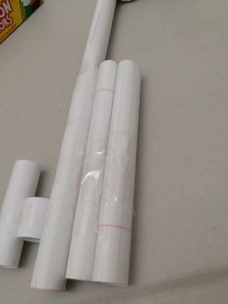 Obtener dos documentos de carpeta y dividir los papeles de 2 en 2 piezas, enrollar con el pegamento, cinta y ponerlos en la pistola