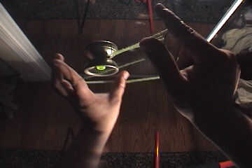 Swing el yoyo para arriba en el frente y montar en la cuerda inferior.