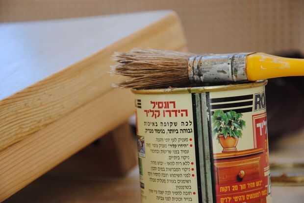 Quité el polvo de madera * a continuación, aplica una capa muy gruesa de barniz, esperar 2 horas (según las instrucciones) y lijar con lija de grano 400. Una vez más, quitar el polvo y aplicar la segunda capa de barniz.