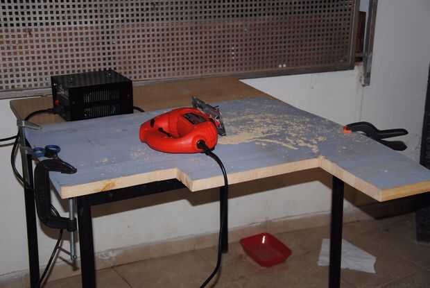 Sujeta el tablero para una mesa y aserrado de las juntas por las dimensiones con mi rompecabezas.