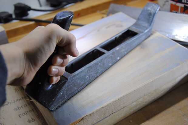 Como he mencionado anteriormente, la madera que utilicé tenía cinta azul en él. En la parte superior, lo me molesta, así que comencé a eliminar con una escofina cepillo, luego 24 lija, y cuando había quitado toda la pintura, alisó hacia fuera un poco con lija de grano 60. Sí, es bastante suave. Habría hecho un paso separado para esto, pero pensé que probablemente soy el único que tenía que hacer esto. Para darle la base de un aspecto más suave, también utilicé mi cepillo raspador para darle una mirada "Routered redonda-over"