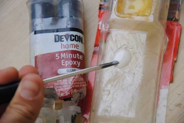 Por último, mezclan algunos Epoxy en 2 partes, aseguró que cubrieron todo el interior del agujeroy coloca ambas tuercas hexagonales dentro. Asegúrese de cubrir la parte expuesta de las tuercas de maleficio, mientras que teniendo cuidado y no dejar que cualquier epoxi accidentalmente goteo dentro.