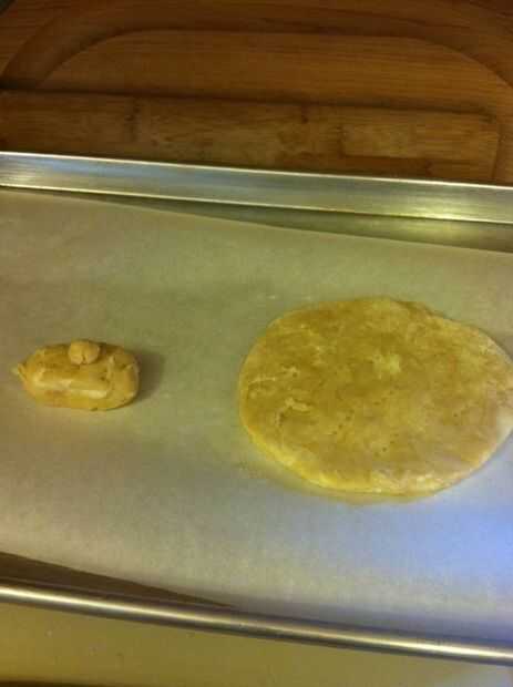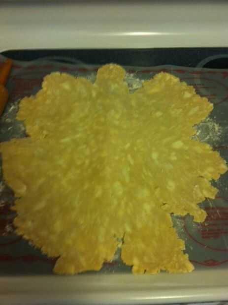 Entonces enciendo el horno a 450 grados. Mientras el horno está calentando Coloque la tartera con corteza y frijoles en la nevera. Ahora toma la pequeña bola de masa de tarta del congelador y rodar hacia fuera. I libre al puente sección de esta pieza y los colocó en una bandeja con papel sulfurizado para que no se peguen.