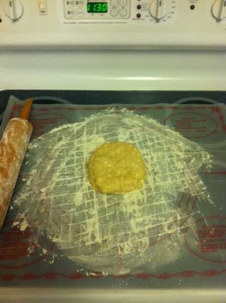 Saque la masa mientras todavía frío pero no congelado.  El truco es hacerlo rodó hacia fuera y en su lugar antes de que el acortamiento vegetal empieza a pegajosas y blandas.  Con un montón de harina rodillo hacia fuera y coloque en la bandeja.