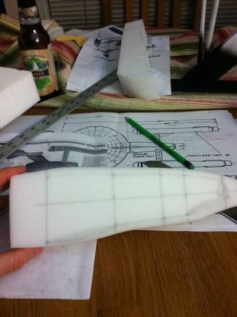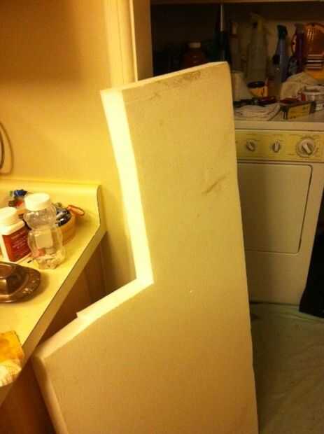 decidí hacer el cuerpo y la necelles de la nave de espuma insullation porque eso es lo que tenía alrededor. Recogí tres hojas de espuma de espesor alta densidad de 2 pulgadas en la yarda de la chatarra el año pasado planeando hacer un traje peludo. Ver utilizar este material para que la base para la cabeza, apilamiento y pegar para obtener el tamaño que necesita y luego tallan. Luego cubren con la piel... Estoy divagando, que sería un otro instructivo que nunca puedo escribir. Volver a la pista, tenía la espuma y no tenía miedo de usarlo. Hice más mediciones y bosquejó la forma básica en la espuma. Luego tallada tanto como yo pude utilizando un cuchillo de pan serated y la herramienta carver calabaza. Después tenía la forma básica usé papel de arena de grano 220 para afinar la forma. Yo nunca había arena espuma antes y nunca podrá hacerlo otra vez. Funciona grande y usted puede conseguir asombroso detalle, te matará. Lijar crea las partículas finas de espuma que se llenan con cosas desagradables que sólo quieren verte muerto. Usar un resperator, una máscara contra el polvo no corte. Estaba planeando tener más detalle, pero dio para arriba cuando me di cuenta que tomaría días de mi vida para crearlos. Estoy dispuesto a sufrir por mi arte, pero que sólo va tan lejos.