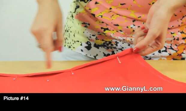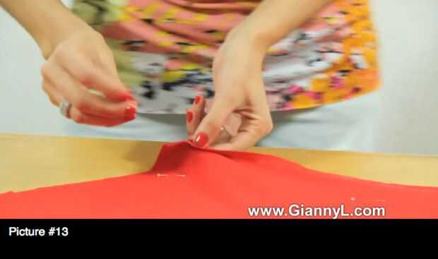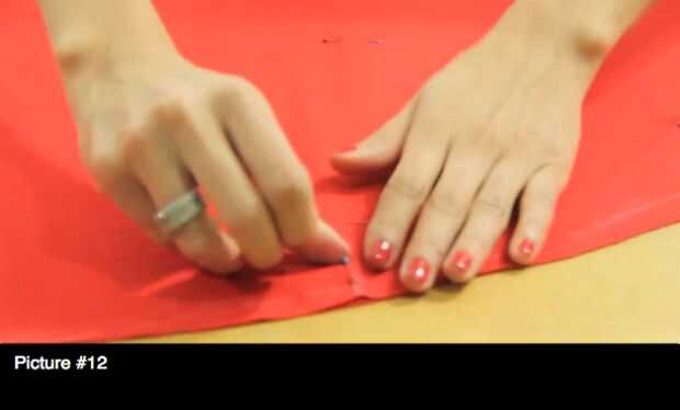 #11 y #12 del cuadro de la imagen: Marcar y fijar a la tela donde vas cosiendo la línea de las caderas.