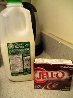 1) en un medio de tamaño tazón combine el pudín y 3 tazas de leche fría.