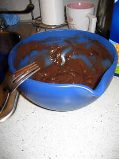 2) bate (no tengo una batidora usé un tenedor) la mezcla durante 2 minutos. (Se verá un poco mocosa que está muy bien porque aún no se ha establecido)