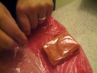 Ahora debe tener su emparedado completamente cubierto de plástico abrigo para evitar que el pudín se derrame hacia fuera.