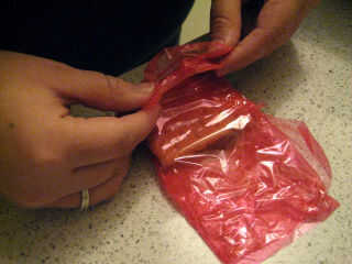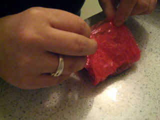 Ahora quiere hacer lo mismo con la parte superior pero en cambio traer y colocar presionando ligeramente hacia abajo en la envoltura de plástico.