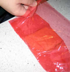 Presione ligeramente para la envoltura de plástico sólo trajo sobre agregados a la otra mitad del plástico