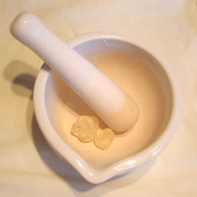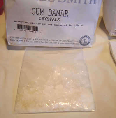 Use el mortero y Maja para triturar el damar. Deja un residuo, por lo que generalmente la machacar mío en una pequeña bolsa de plástico para limpiar mi equipo. Más picado es más rápido se derrite. El damar probablemente tendrá cierta materia orgánica en él, pero no te preocupes ahora.