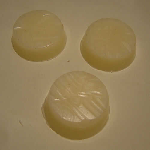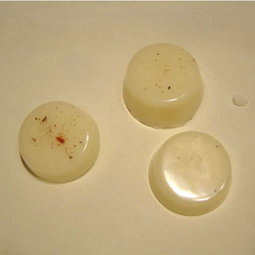 Te darás cuenta de que la parte inferior de cada 'cake' tiene algunos residuos en él. Este es el material orgánico de la damar. También puede haber algunos trozos del pigmento. Querrá volver a raspar con la espátula o un cuchillo de mantequilla. Si el soporte es incoloro y toma mucha cera puede tirar en la puede volver a fundir más adelante también. Raspe hasta que no haya ninguna materia extraña izquierda. Como siempre, que estás utilizando un cuchillo y puede cortarse. Así que no.