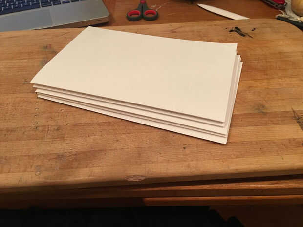 Una firma es un grupo de páginas que haz cosido. Mi papel es gruesa, por lo que estoy usando dos hojas de papel para una firma. Si estaba usando papel de copia probablemente utilizaría seis hojas.