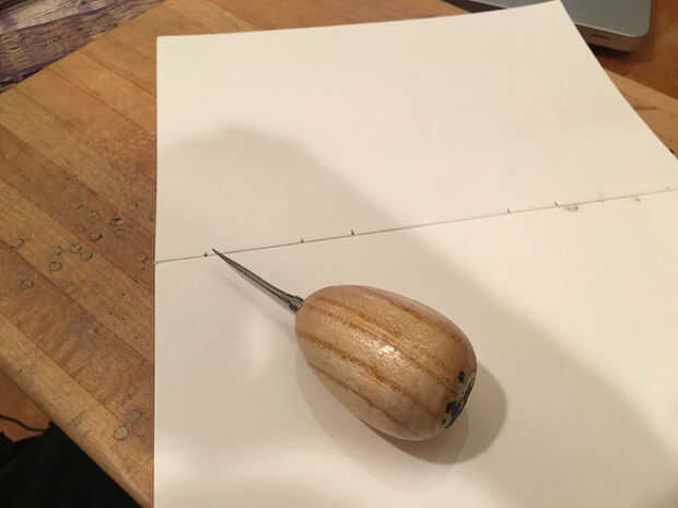 Utilizar su herramienta sobresaliendo (punzón, alfiler, etc.) para meter esos agujeros que marcó. Ahora tiene su firma principal, que se puede utilizar como plantilla para empujar los agujeros en el resto de sus firmas. Asegúrese de que son todos idénticos.