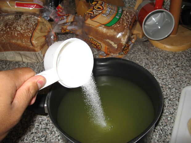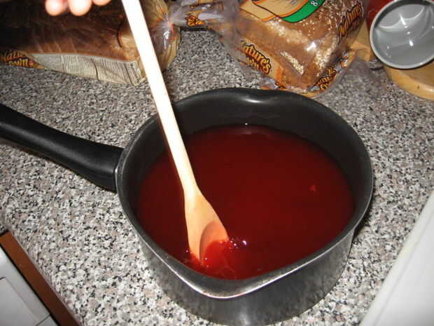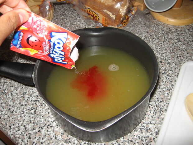 Vierta el azúcar y el Kool-Aid en el jugo de la salmuera. Revuelva hasta que se disuelva todo el azúcar y el Kool-Aid.