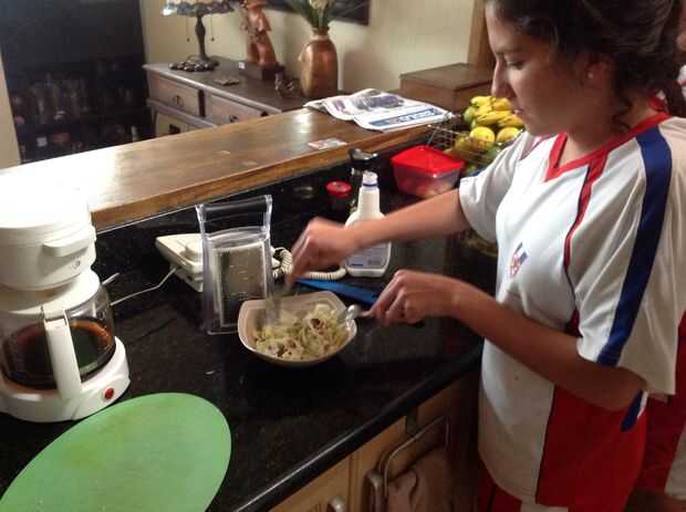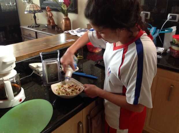 ensalada de pollo y César todo en unoPaso 1: ingredientes -Pollo rebanado (empapado en salsa italiana y a la parrilla)-Tomates picados-Lechuga picada-Cebolla picada-Tiras de queso cheddar (o cualquier tipo de queso)-Aderezo de Caesar (usé Steak House
