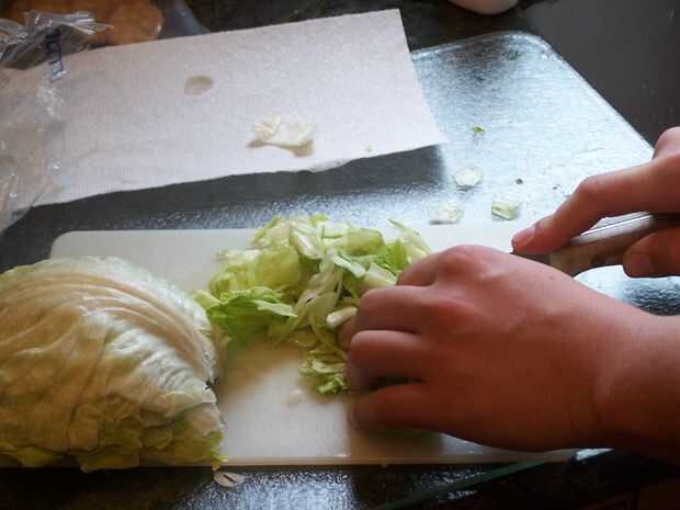 3. Corte la media cabeza de lechuga en picadura de pequeños pedazos de tamaño
