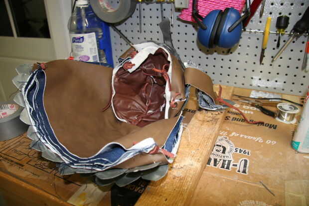 también hice un vinilo y revestimiento del dril de algodón del interior del casco.