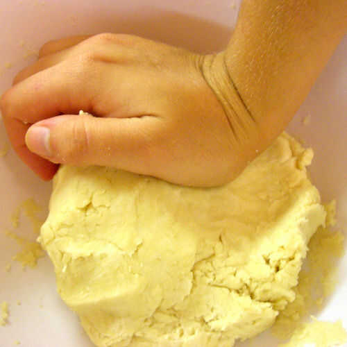 Ahora empuje las piezas para que sea un bulto. No amasar! Apretar hasta que todo se pega junto.
