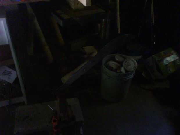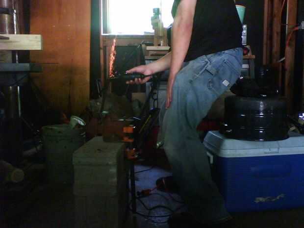 Meter su pieza acabada de machete en un vicio, y luego utilizar una dremel con un accesorio de la rueda de corte de metal y arreglar ese agujero, corte cualquier bit extra que no es necesario. Lo siento por las fotos están oscuras, fue tomada por mi celular hpone, en mi garaje. Gafas cuando usted cortar con el dremel, por cierto.