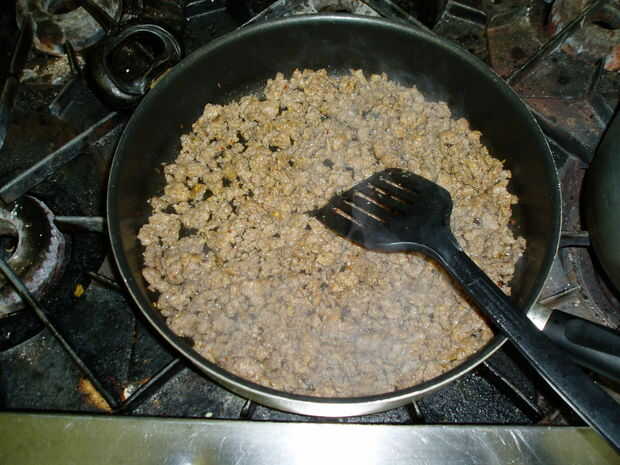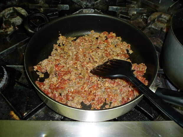 3. Encienda el quemador de la estufa a fuego medio. Retire la olla y coloque sobre la hornilla. Como cocina la salchicha necesita romper con la espátula en trozos más pequeños. Cocine el chorizo hasta que ya no es color de rosa. Asegúrese de mezclar la carne con frecuencia para asegurar que se cocina uniformemente. Dejarlo cocinar desatendido para una duración larga causará la salchicha grabar en la bandeja.