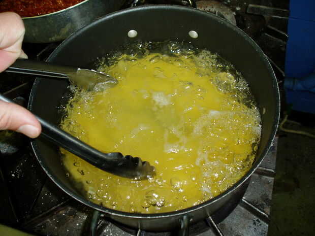 7. después de unos diez minutos tomar un fideos de la olla y lo revisen para ver si se hacen de la muestra. Cuando usted muerde la pasta debe ser muy tierno, si son todavía firmes dejarlos hasta que estén tiernas.