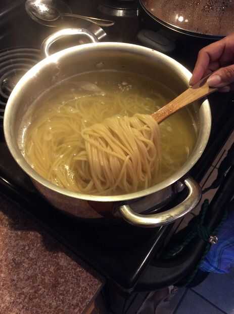 Deje hervir agua durante aproximadamente 15 minutos. Una vez que haya hervido el agua vierta los fideos en el agua y siga las instrucciones en el paquete.