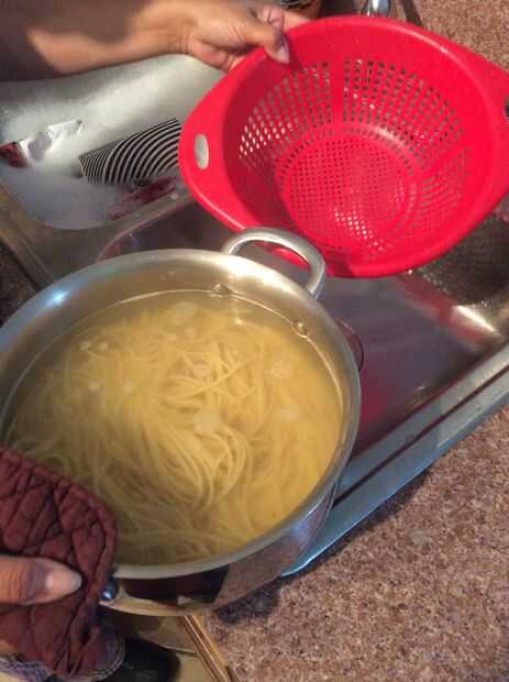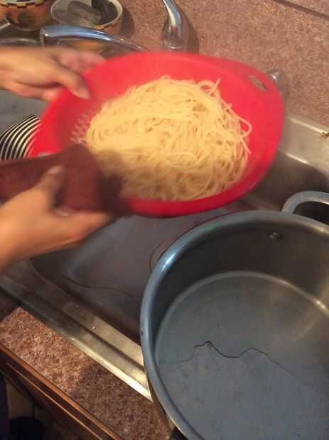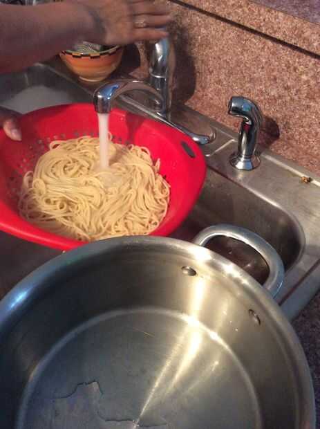 Una vez drenado en colador correr agua fría sobre fideos por unos 5 o 10 segundos.