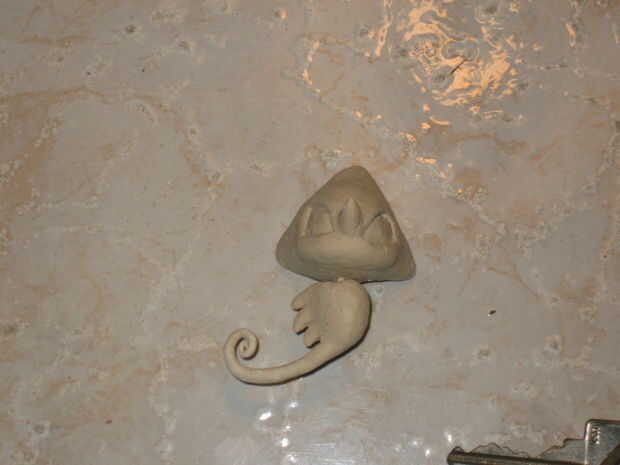 Así que utilice una línea húmeda de arcilla para hacer un lazo y pegar con deslizamiento en el cuerpo.