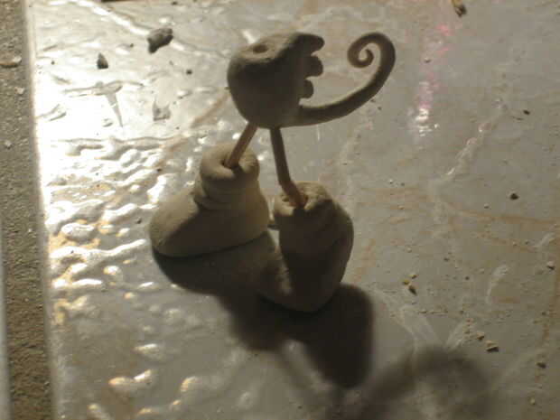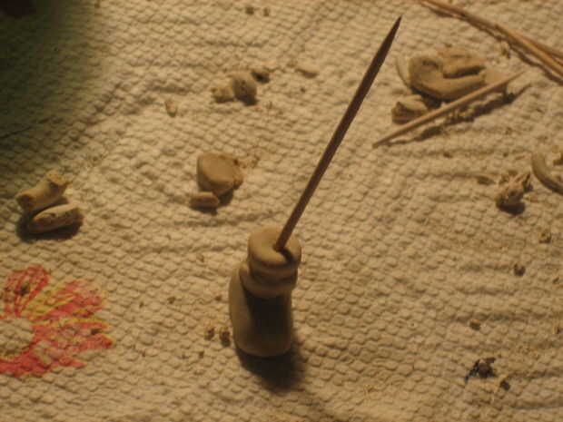 Después de perfore el cuerpo donde las piernas tienen que para ir y poner pegamento en ellos. Después de eso poner los palillos en los agujeros del cuerpo.