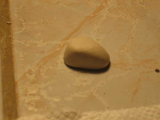 Usando un palillo de dientes tallaremos entre superior e inferior para hacer el pliegue en el centro del cilindro.