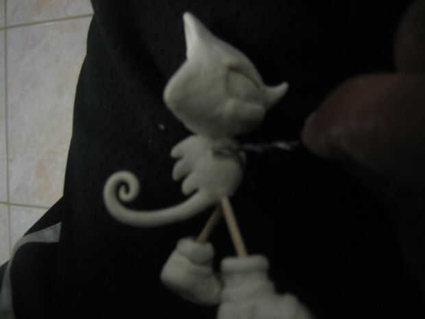 ¡ No taladre directamente en el cuerpo! Sólo queremos usar el lado de la broca para tallar el cuerpo donde los brazos se suponen que son para los palillos de dientes en los lados.