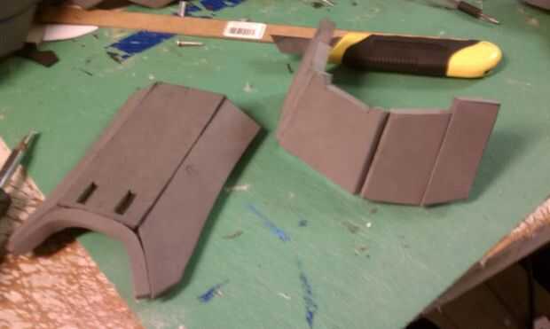Para un cuchillo de carpintero: Recomiendo conseguir uno de estos. Tienen complemento de hojas y cuestan menos de 10 dólares, probablemente la herramienta más útil exenta la dremel. Para esta guía el cuchillo sobre las líneas. Con esto, puede inglete los cortes por pesca la mano durante el corte. Esto le permitirá facilitar las conexiones angulares con espuma. Para curvas, hacer todo lo posible. Usted puede siempre lijar correctamente con la dremel más adelante.