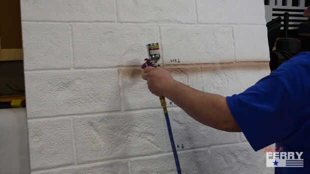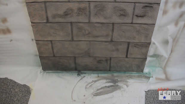 Una capa base de un color terroso siempre parece funcionar bien para el aspecto de bloques de hormigón. Si realmente quiere vender el efecto, aerógrafo un color ligeramente más oscuro en las líneas de lechada y las depresiones y que realmente salga. O en el caso del panel de reunión el terreno, un poco de verde agrega el aspecto de molde o musgo se acumulan. A ser creativo con ella. Puede Agregar vid o hiedra como yo lo hice en la torre que hice para el musical Shrek.