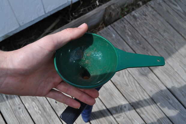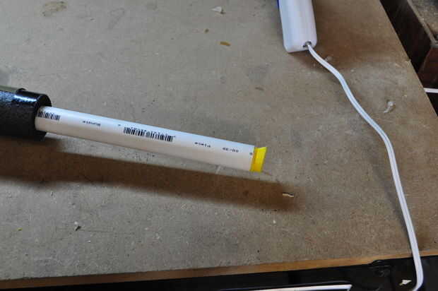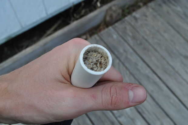 Ahora antes de que usted puede poner el pomo que es necesario agregar el peso a la espada. Quería que mis espadas que pesan 1lb por lo que simplemente rellena el extremo abierto lleno de arena. Esto también los hace balance de 5-6" al frente de la guardia. Si quería una espada ropera de estilo y lo necesitan para equilibrar en la guardia, podría conseguir algunos acero redondo y utilice una clavija de madera para compensar el acero del centro para que el acero se encuentra en el mango. Asegúrese de que lo uses, que sea buena y apretada. Si utilizar arena o grava de tanque de los pescados entonces utilizar otro tapón como de antes y sellar con pegamento caliente.