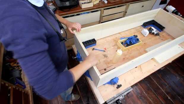 Para la mayoría de los estantes: voy a utilizar la ocultación de agujero, así que me estoy preparando las de bolsillo agujeros, dos a cada lado de los estantes.