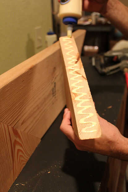 En segundo lugar, no quería que la veta para mostrar, así que volví a los extremos a la pared. Esta es la misma técnica que podrás ver carpinteros utilizar cuando ellos quieren/necesitan detener moldeado en medio de una pared. A mi es de esos detalles que marcan la diferencia en un proyecto, pero ciertamente no es una necesidad si no tienes las herramientas (una gran mitra vio y pistolas grapadoras) o tiempo para preocuparse por ello. (En retrospectiva, creo que probablemente sería omitir este paso. No creo que hace una diferencia bastante grande a suficiente gente para justificar el tiempo extra y complicación, pero si eres un perfeccionista en él)