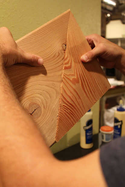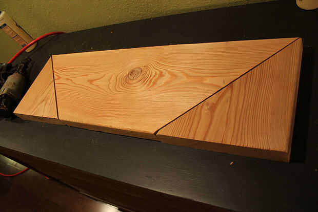 Luego he hojeado los triángulos que creé para que la veta ahora enfrentaría la parte posterior de mi estante.