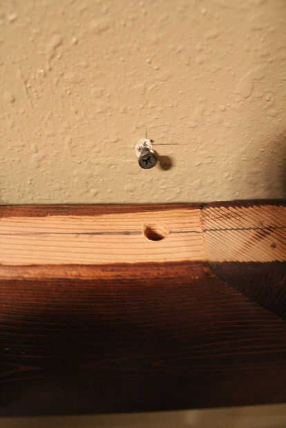 ** Somos lo bastante afortunados como para tener 1 x 6 detrás de todos nuestros paneles de yeso por lo que no tenía que preocuparse por golpear un poste de madera o la adición de anclas, pero probablemente será, pues piensa en esto antes de empezar a taladrar los orificios en la parte posterior de cada estante y planificar **