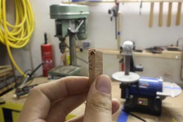 El siguiente paso es perforar a través de un agujero al lado de la pieza.