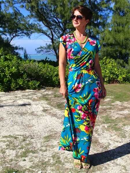 El patrón de costura gratis más descargado de cosa tan fácil es el Vestido de abrigo. Así que cuando quise coser un vestido tropical, este patrón surgió inmediatamente a la mente. A veces no basta con meterse con una cosa buena! Compré este dad increíble punto en una impresión tropical y es perfecto para la vida de la isla. Pero yo quería realizar pocos cambios en el patrón original: